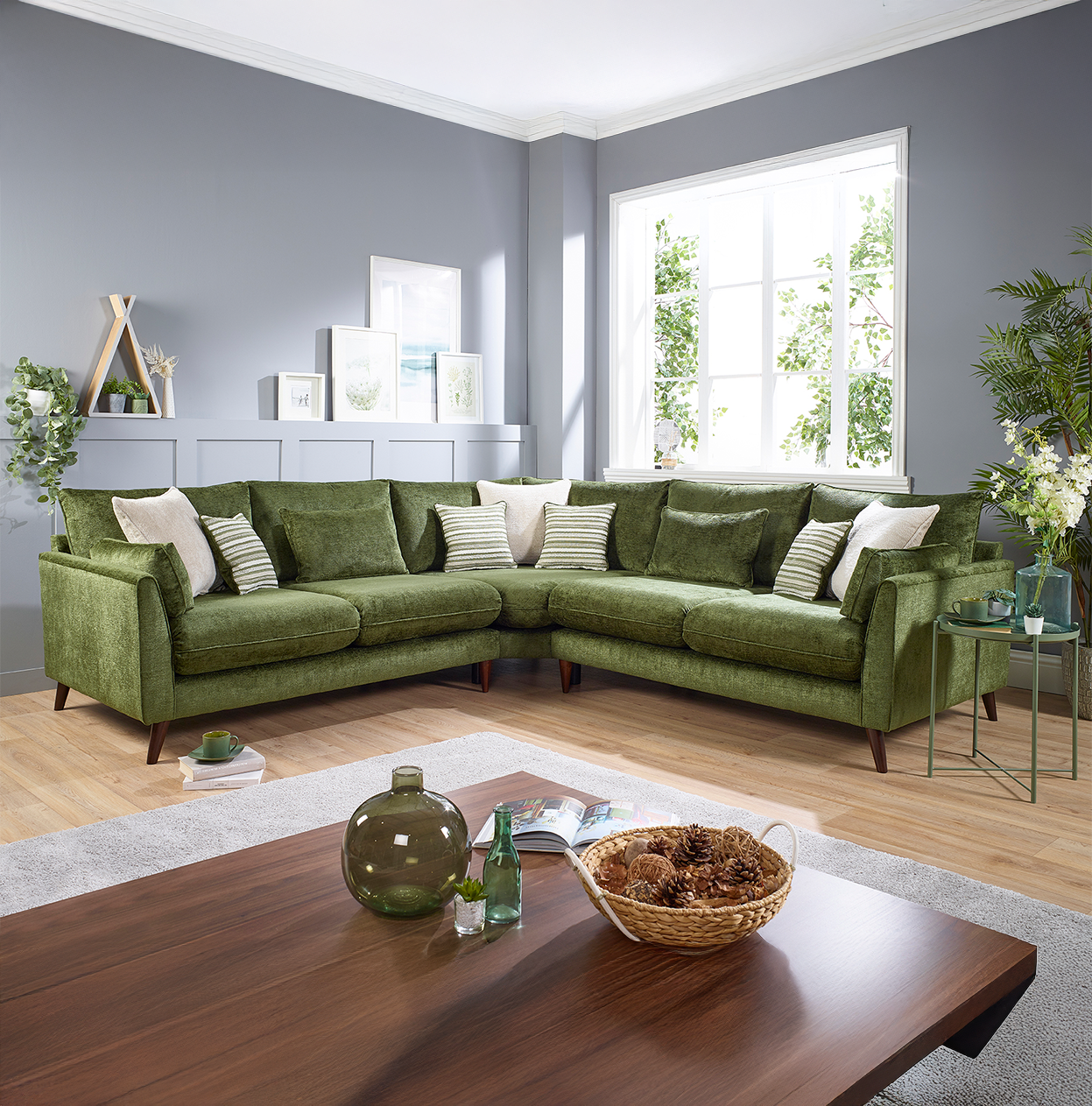 The Petra ! A classic design with a contemporary twist which would live happily in a traditional or modern living space. An extremely comfortable sit with high back cushions and arm bolster wraps you in luxurious support, the striking accent cushion offers both style and flare. A choice of wood colour just adds that finishing touch to any interior theme.